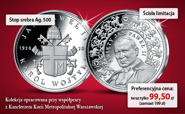 27 kwietnia cały świat uczci pamięć Wielkiego Polaka. W tym ważnym okresie Skarbnica Narodowa zdecydowała się na emisję specjalnej kolekcji numizmatycznej z wizerunkiem papieskim. „Jan Paweł II – Człowiek, który zmienił świat” to kolekcja medali w stopie srebra Ag 500 o wartości kolekcjonerskiej i sentymentalnej. Limitacja kolekcji to jedynie 10 000 kompletnych serii. Koncepcja i wygląd medali zostały stworzone we współpracy z byłym Kanclerzem Kurii Metropolitalnej Warszawskiej, Księdzem Infułatem Grzegorzem Kalwarczykiem.