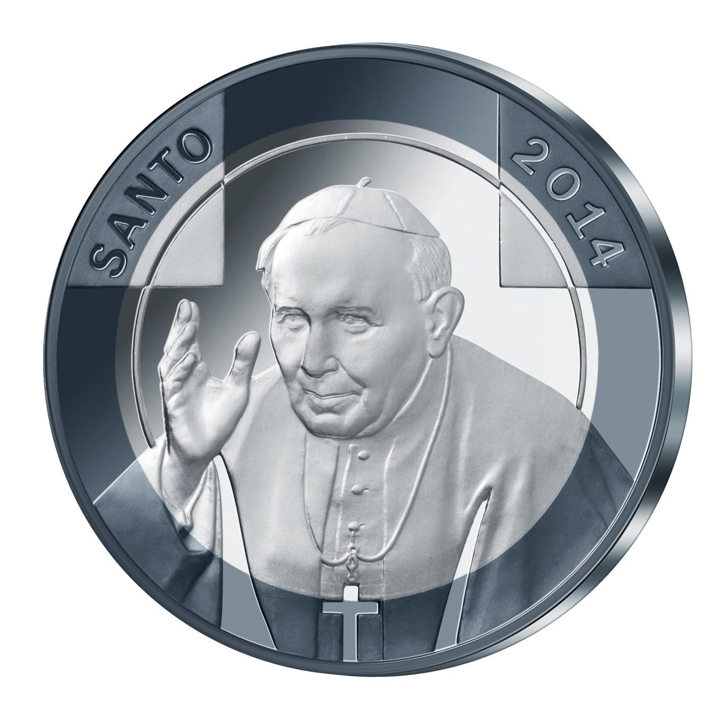 27 kwietnia 2014 roku będzie miała miejsce kanonizacja Jana Pawła II. Z tej okazji Skarbnica Narodowa wybiła medal, na którym dzięki zastosowaniu niezwykłej technologii uzyskano efekt trzech kolorów srebra.